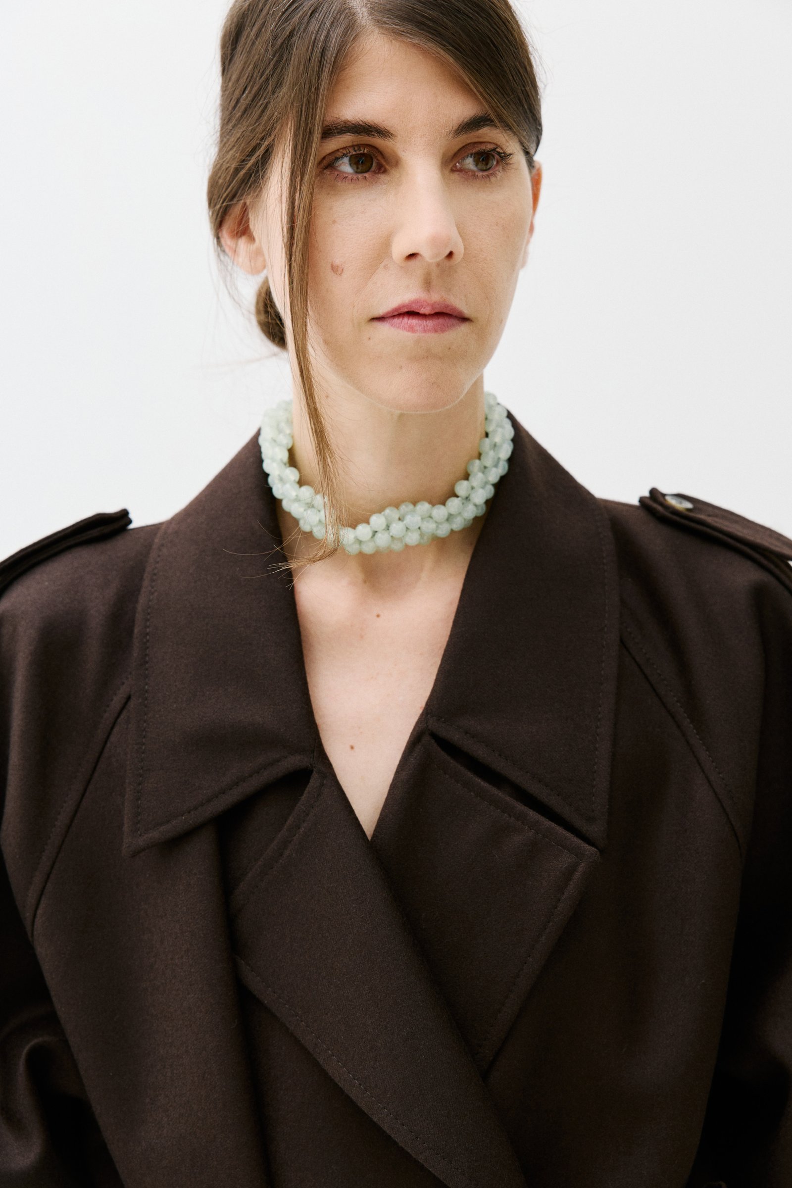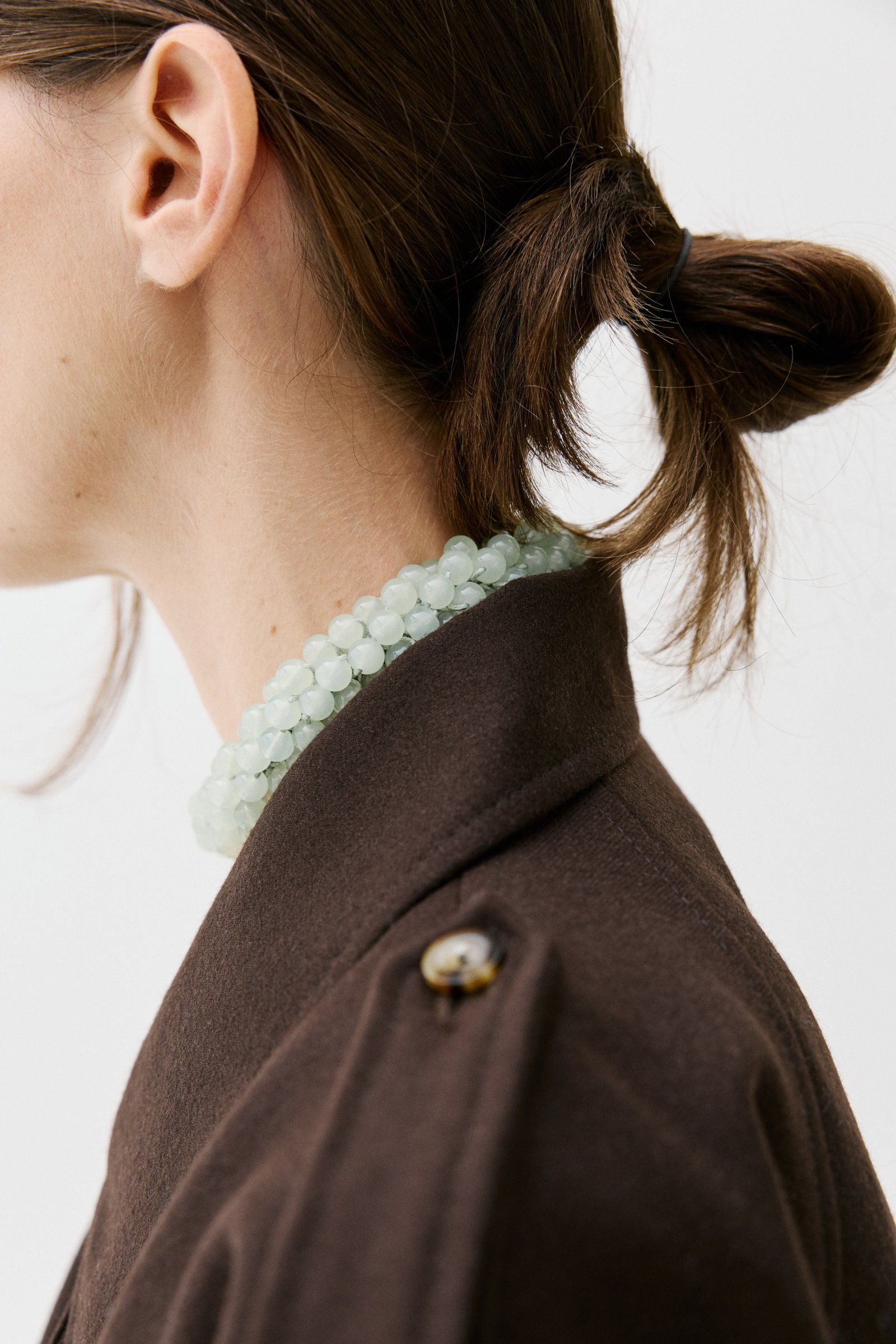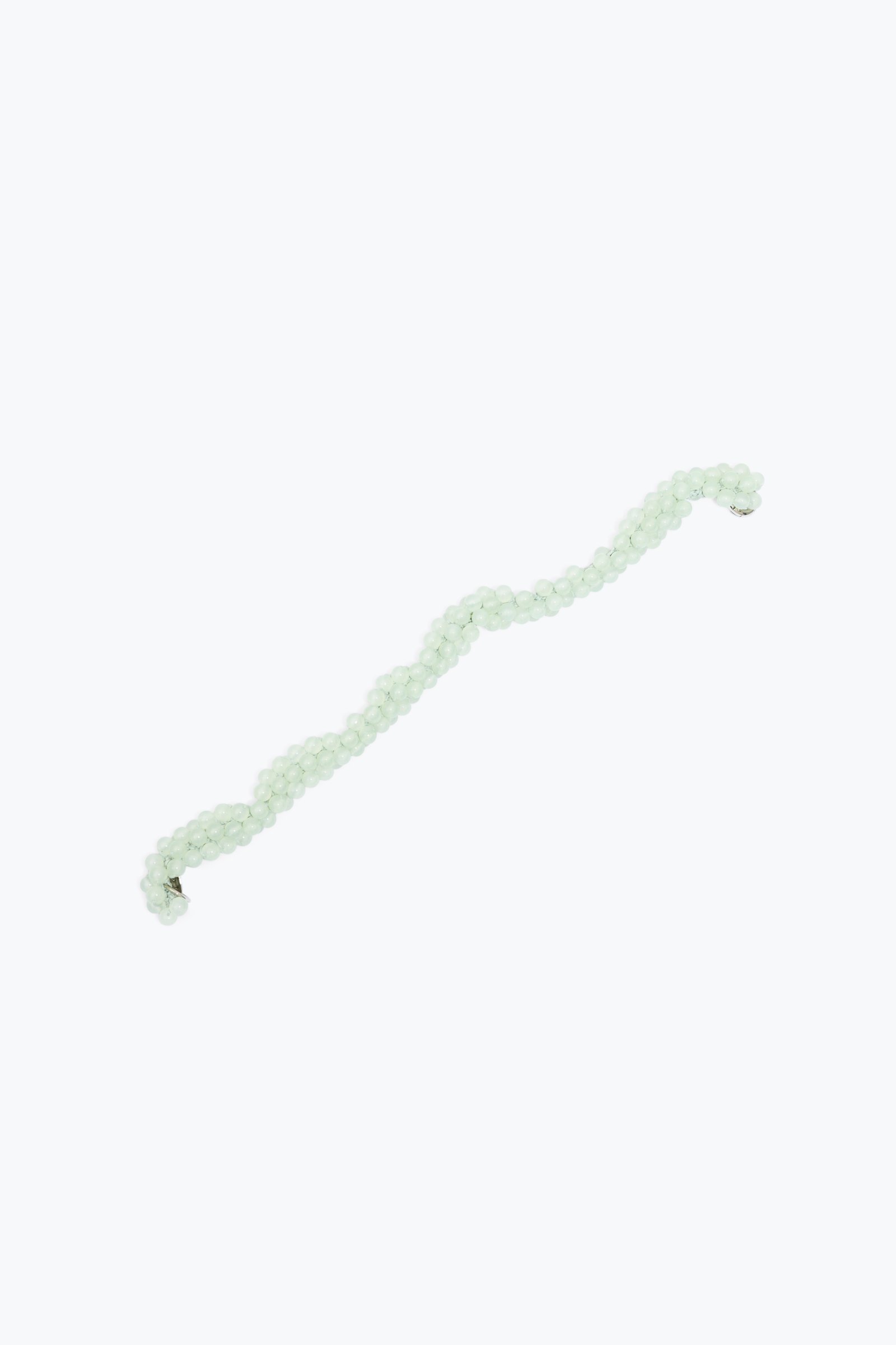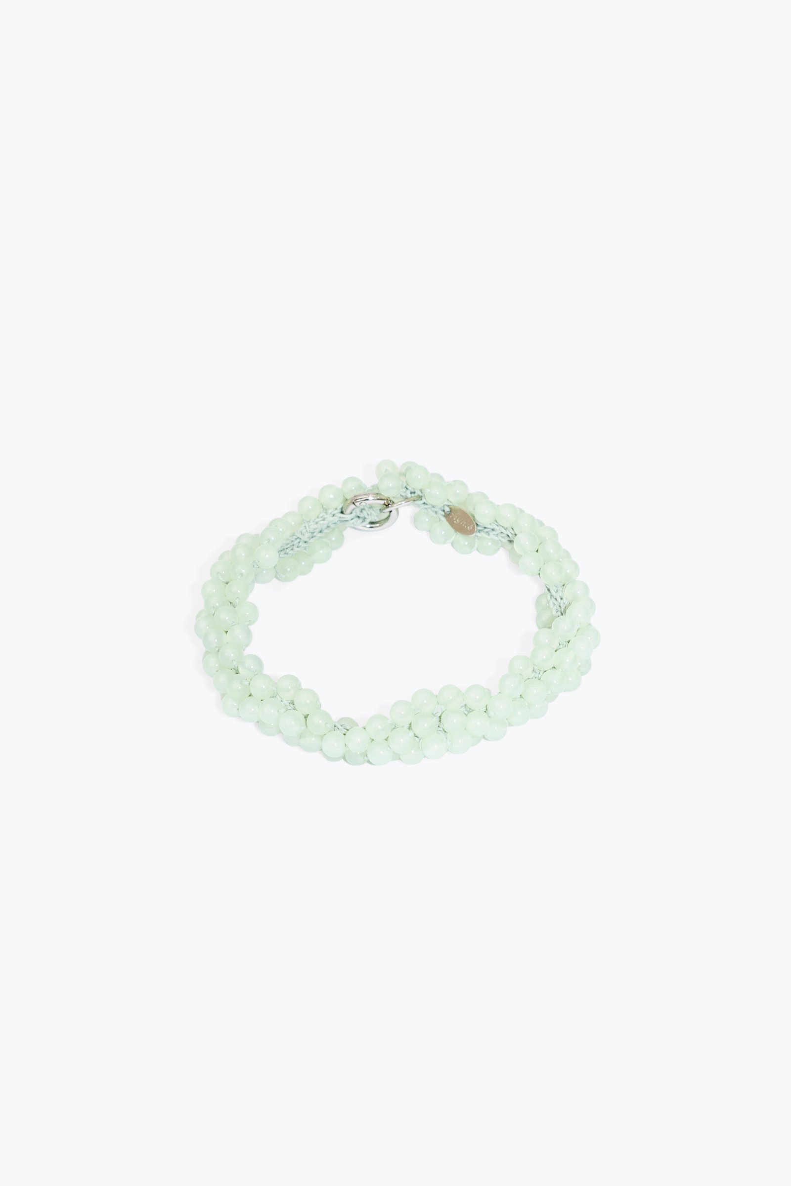 HAND-CROCHETED COTTON CORD GLASS BEAD NECKLACE. HANDMADE ALPACA SILVER CLOSURE.