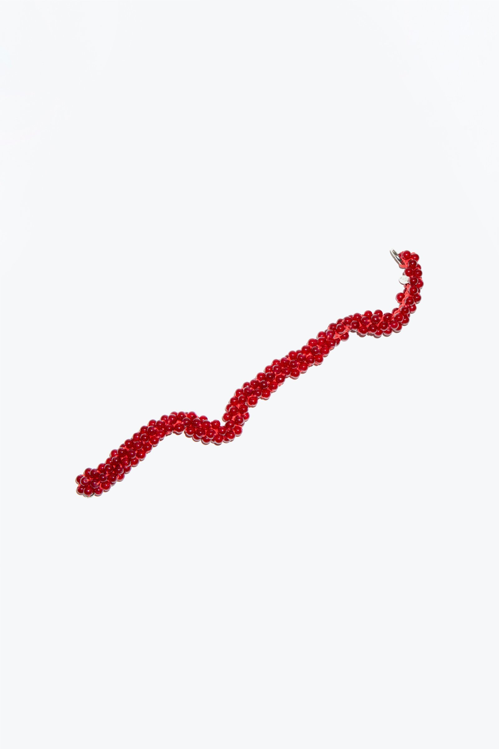 HAND-CROCHETED COTTON CORD GLASS BEAD NECKLACE. METAL CLASP.