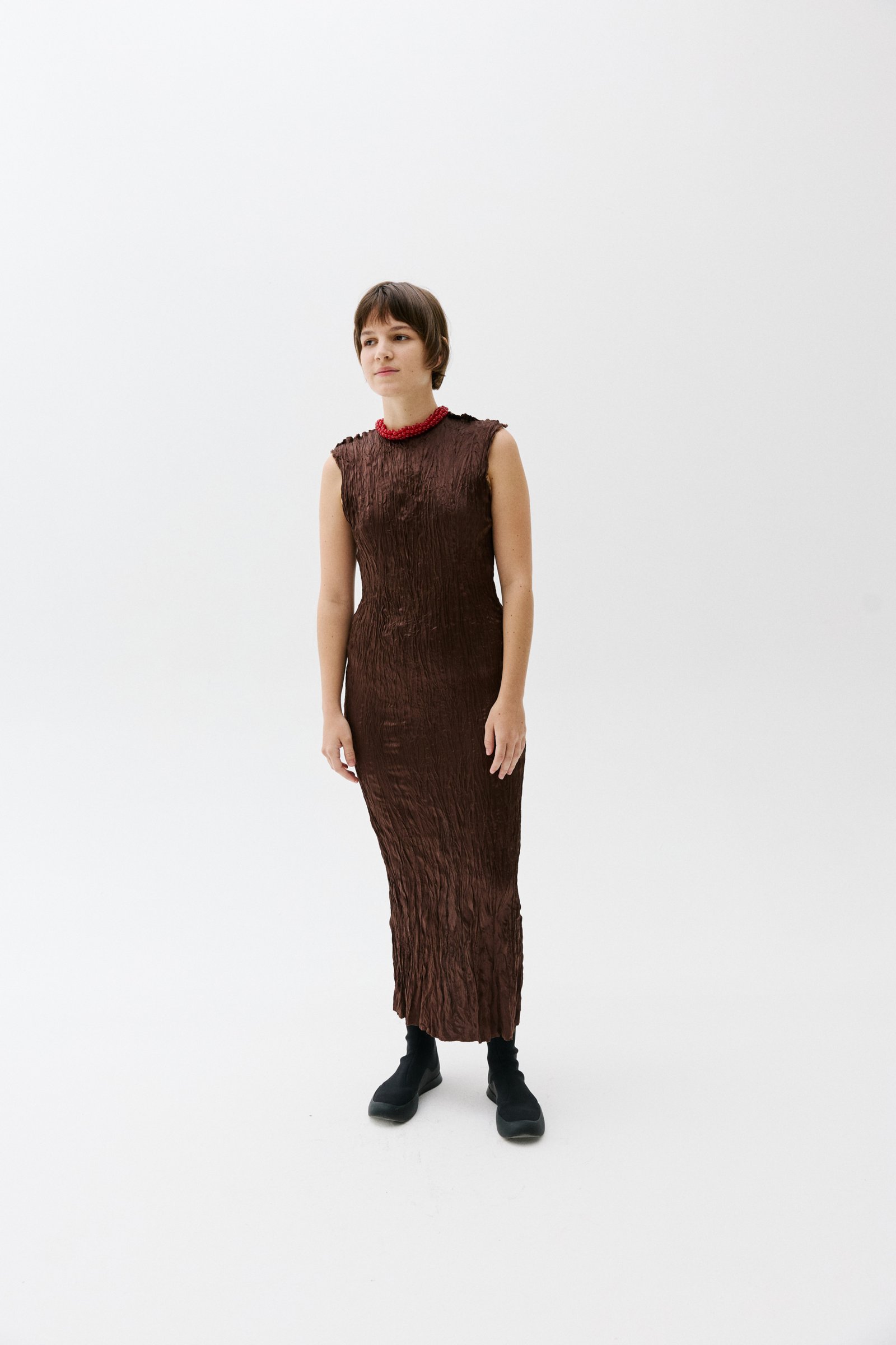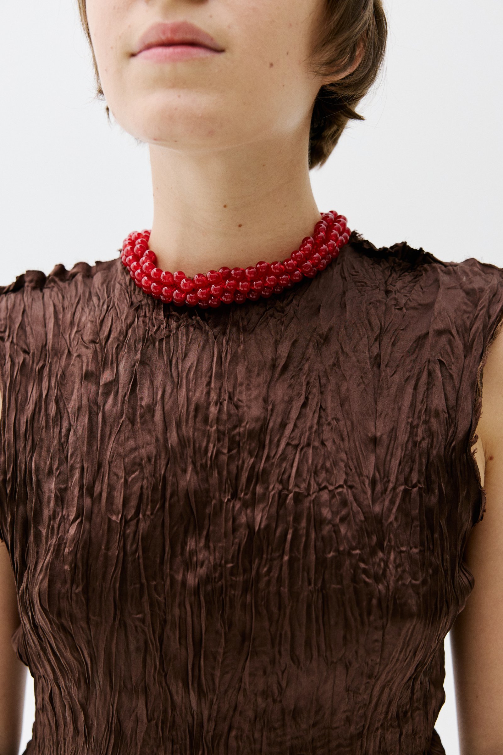HAND-CROCHETED COTTON CORD GLASS BEAD NECKLACE. HANDMADE ALPACA SILVER CLOSURE.