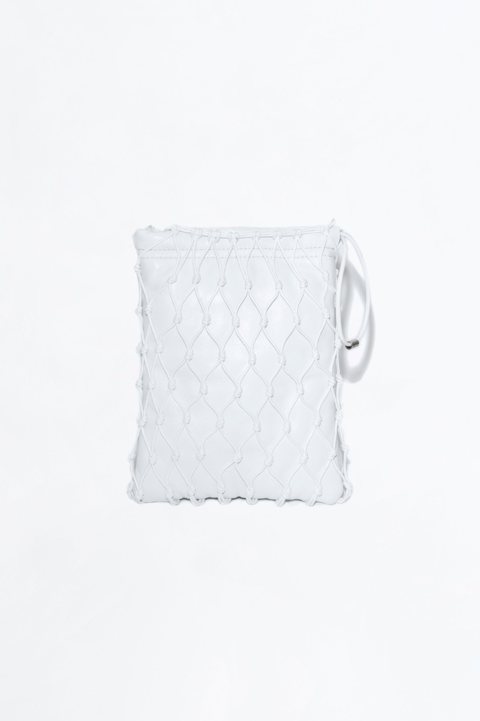 HAND-KNOTTED NET IN COTTON CORD WITH SOFT LAMBSKIN POCKET AND DRAWSTRING CLOSURE. IT HAS COTTON CROSSBODY STRAPS AND PURE COTTON LINING.